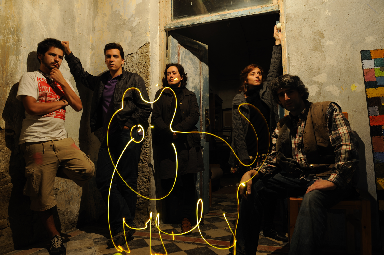 Giorgi, Anton Sokolov, Tinatin Chkhikvishvili, Tutu Kiladze, Anton Balanchivadze and the freezlight figure in Art Villa Garikula, 2013