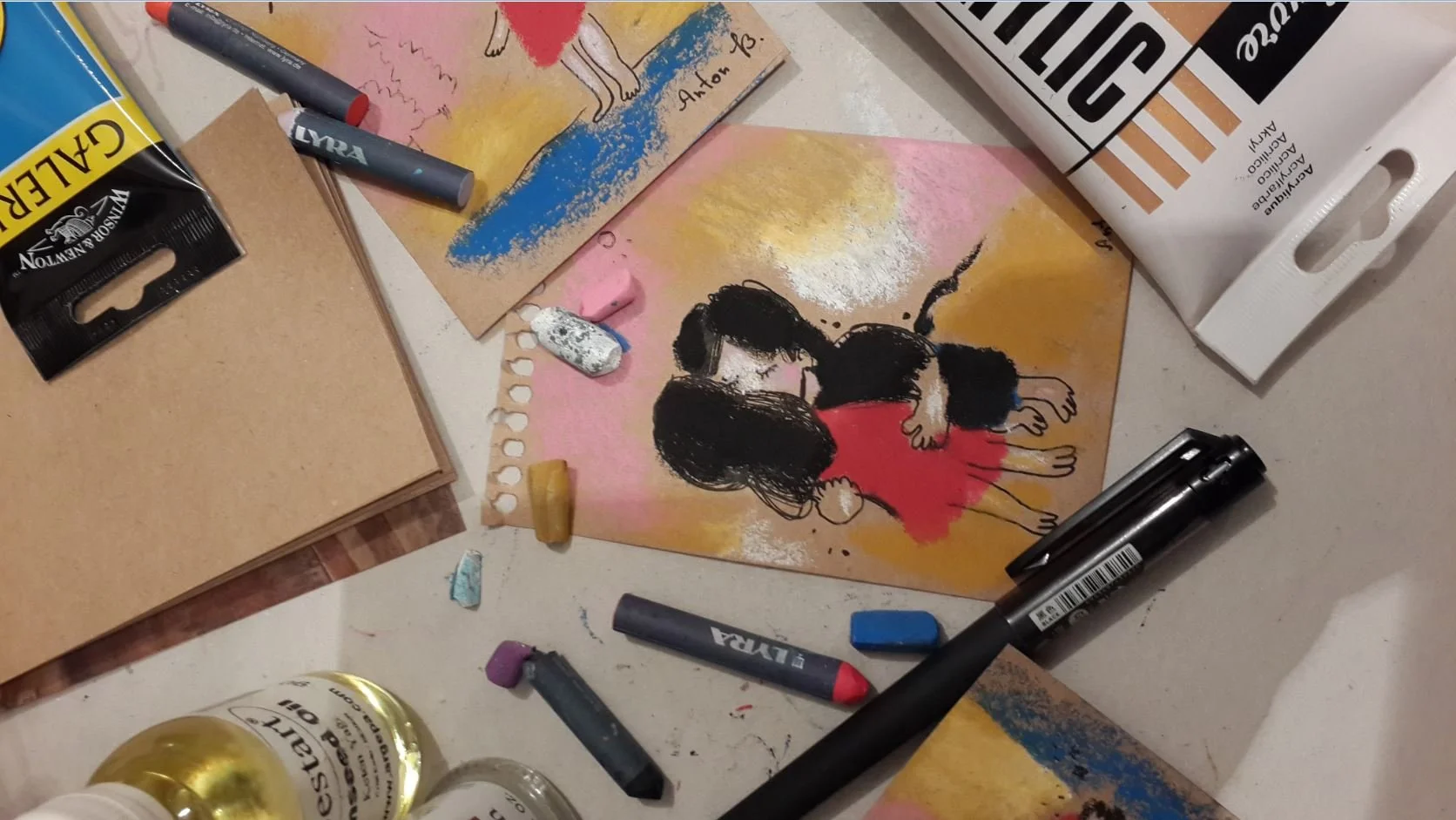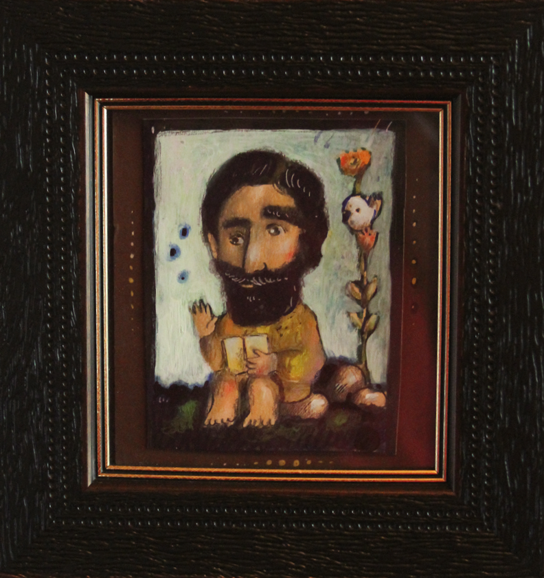 Small-scale works in pastel, oil, acrylic, and mixed media on wood, paper, and canvas.
