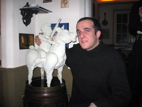 A humorous sculpture by Anton Balanchivadze depicting a rider on horseback. Tapiri Art Café and Gallery, 2006